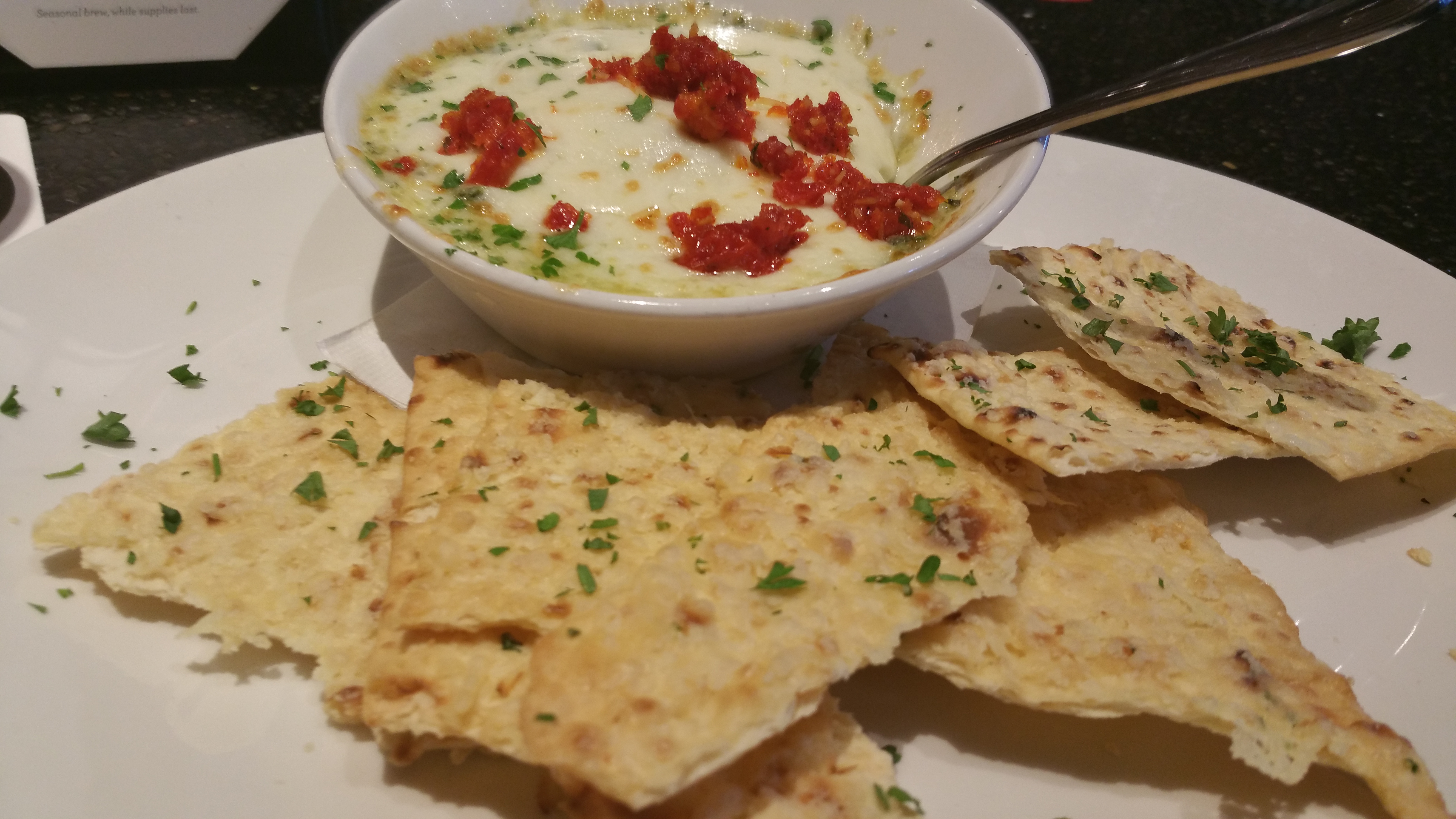 The spinach artichoke dip was unique. They used a heavy layer of Parmesan cheese and brie blend. It really brought out the flavor of the dip.